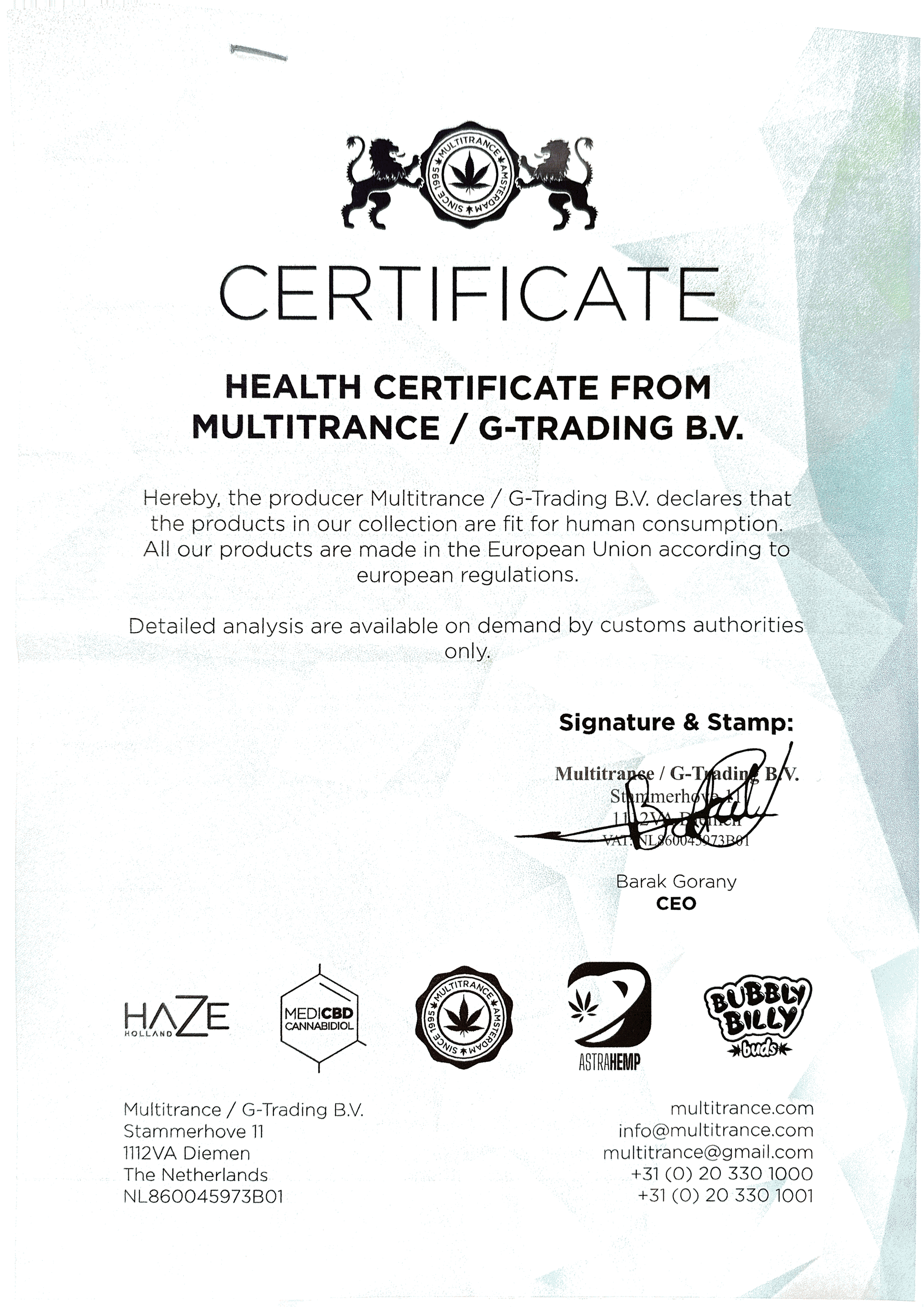 Продукти запропоновані на сайті є сертифікованими та відповідають стандартам безпеки ЄС та України